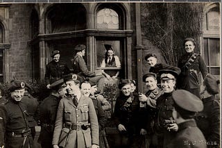 From Wikimedia Commons (National Library of Ireland on The Commons): This shot of joking Black and Tans and Auxiliaries was taken outside the London and…